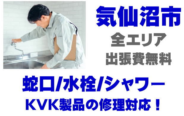 気仙沼市で水栓メーカーKVKの修理業者をお探しなら当社までお気軽にお問い合わせください。蛇口の水漏れ、シャワーの故障などKVK製に関するトラブルなら何でもご相談ください。